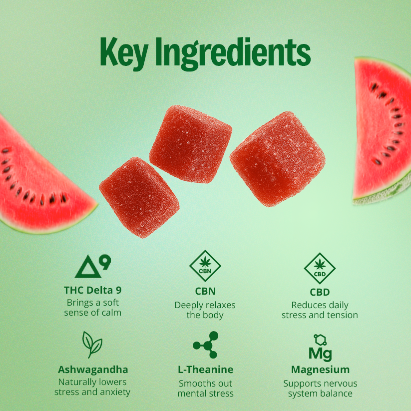 ↳ Drift into deeper rest. A soothing blend of cannabinoids and botanicals that eases you into deeper, uninterrupted sleep so you wake feeling truly refreshed.